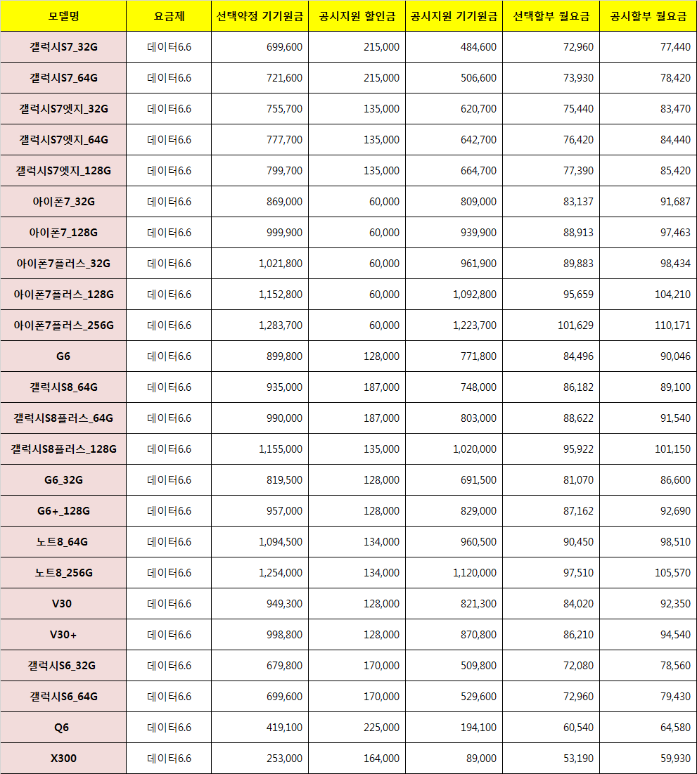 (부가세 및 할부이자 월마다 차이 있을수 있음/선택약정 월요금 원단위 반올림 금액)