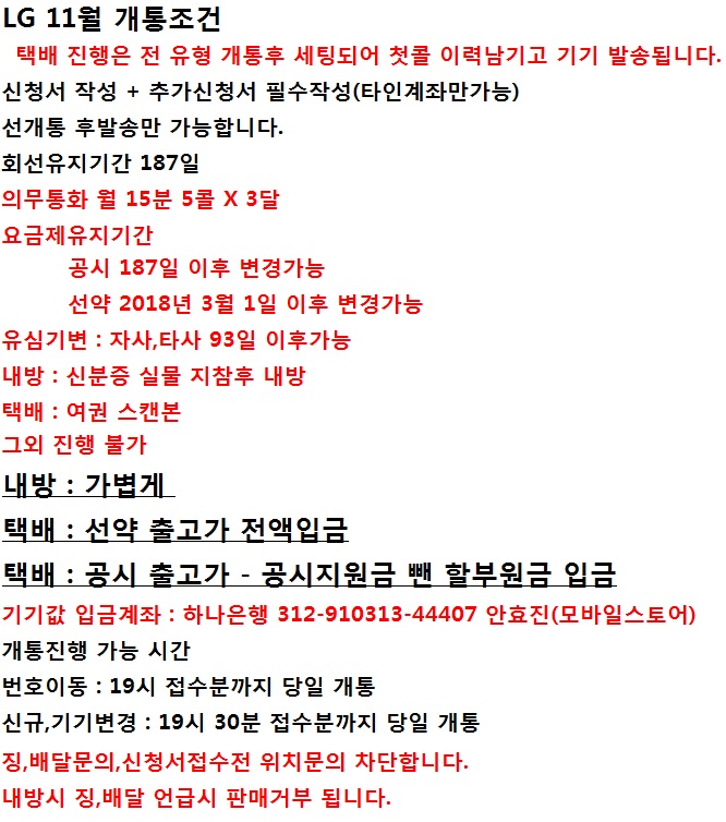 - 부가서비스는 상단에 있는 판매자 전달내용에 나오는 날짜를 반드시 지켜서 해지 하셔야 합니다.