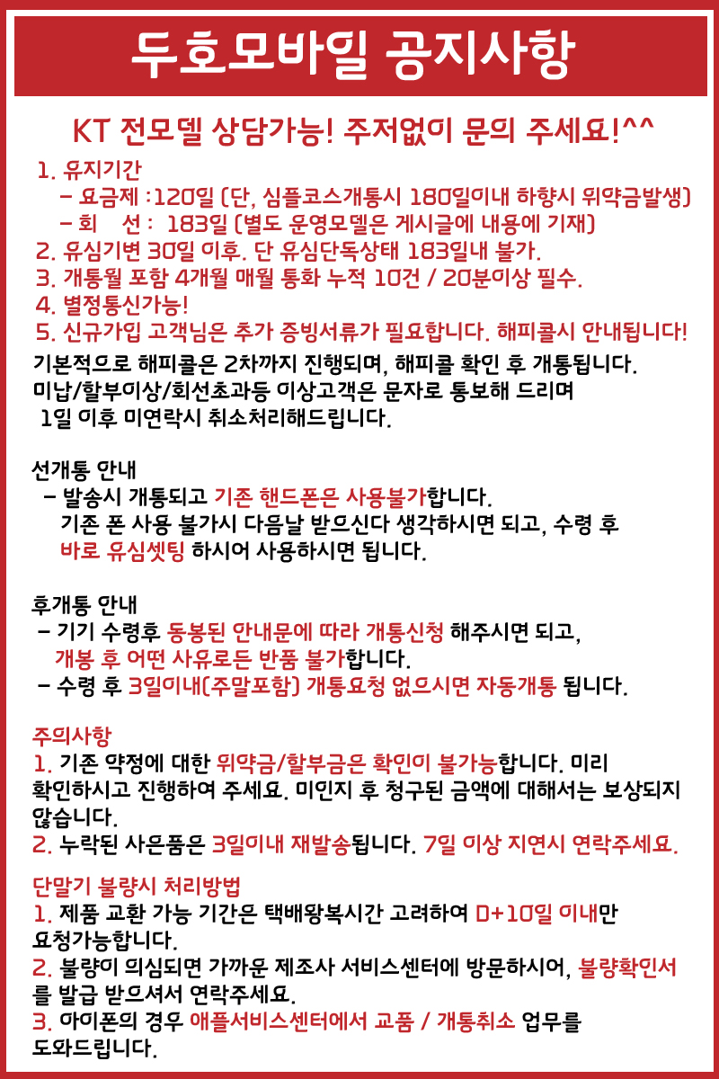 - 부가서비스는 상단에 있는 판매자 전달내용에 나오는 날짜를 반드시 지켜서 해지 하셔야 합니다.